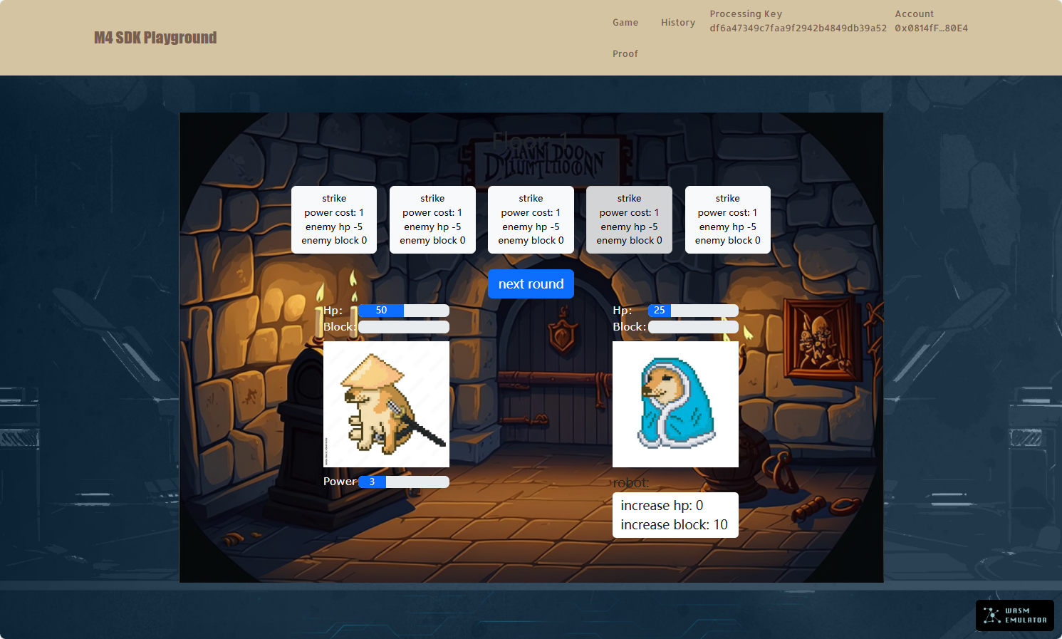 After a signature request to the wallet, you will see the demonstrated game UI:&#x20;
